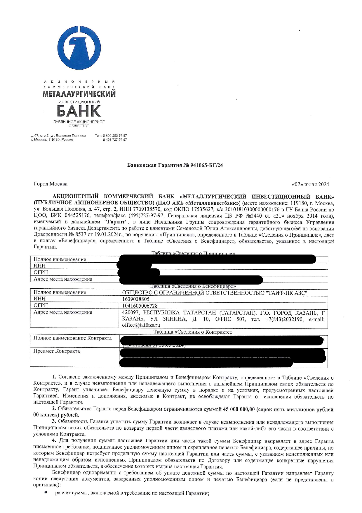 Подберём банковскую гарантию под ваш контракт с минимальной ставкой среди 10+ банков - подготовим правильный пакет документов за 1 день и добьёмся одобрения с первого раза.